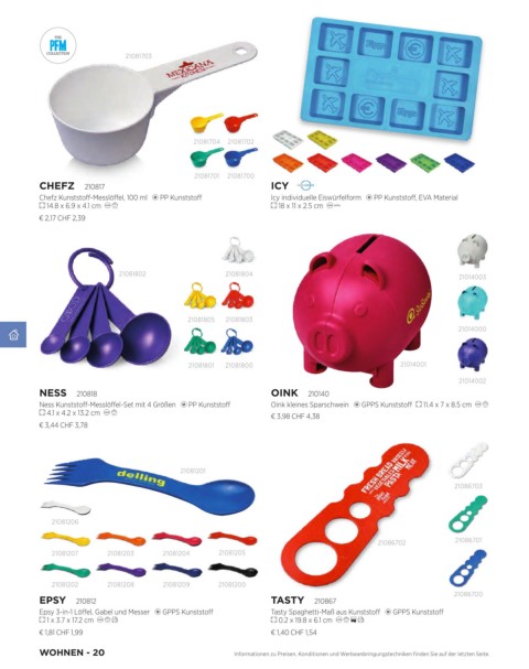 Ness Kunststoff-Messlöffel-Set mit 4 Größen PP Kunststoff Oink kleines Sparschwein GPPS Kunststoff 11.4 x 7 x 8.5 cm