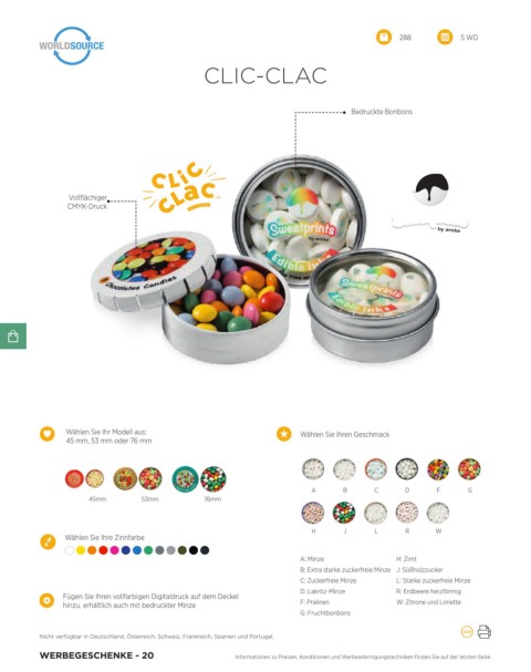 hinzu, erhältlich auch mit bedruckter Minze F: Pralinen W: Zitrone und Limette