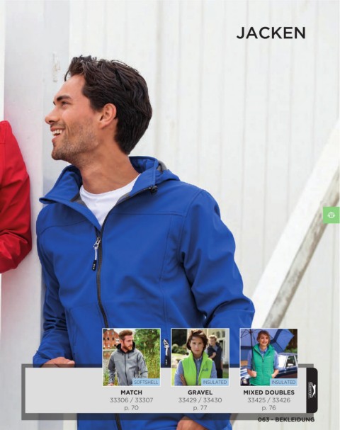 JACKEN SOFTSHELL INSULATED INSULATED MATCH GRAVEL MIXED DOUBLES 33306 / 33307 33429 / 33430 33425 / 33426 p. 70 p. 77 p. 76 063 - BEKLEIDUNG
