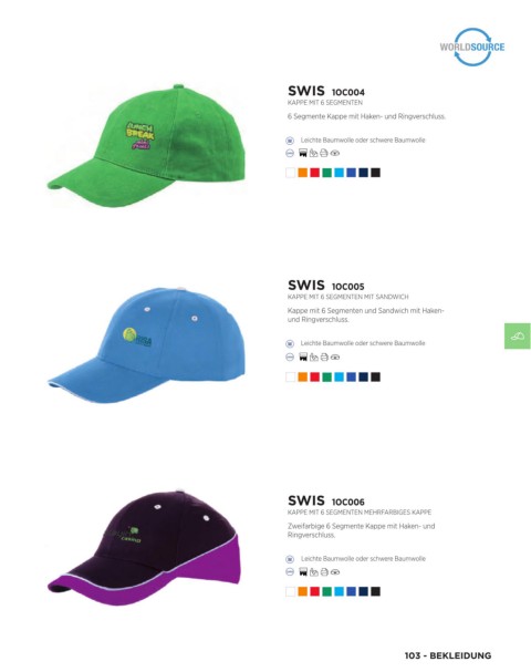 6 Segmente Kappe mit Haken- und Ringverschluss.
